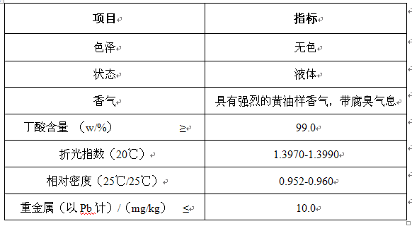 2、丁酸在白酒中為主要呈味的酸味劑之一,其白酒中含量一般在8-150mg/L,其中濃香型白酒中含量高。本制品是白酒后味悠長(zhǎng)、醇厚、清爽的重要呈味物質(zhì)。